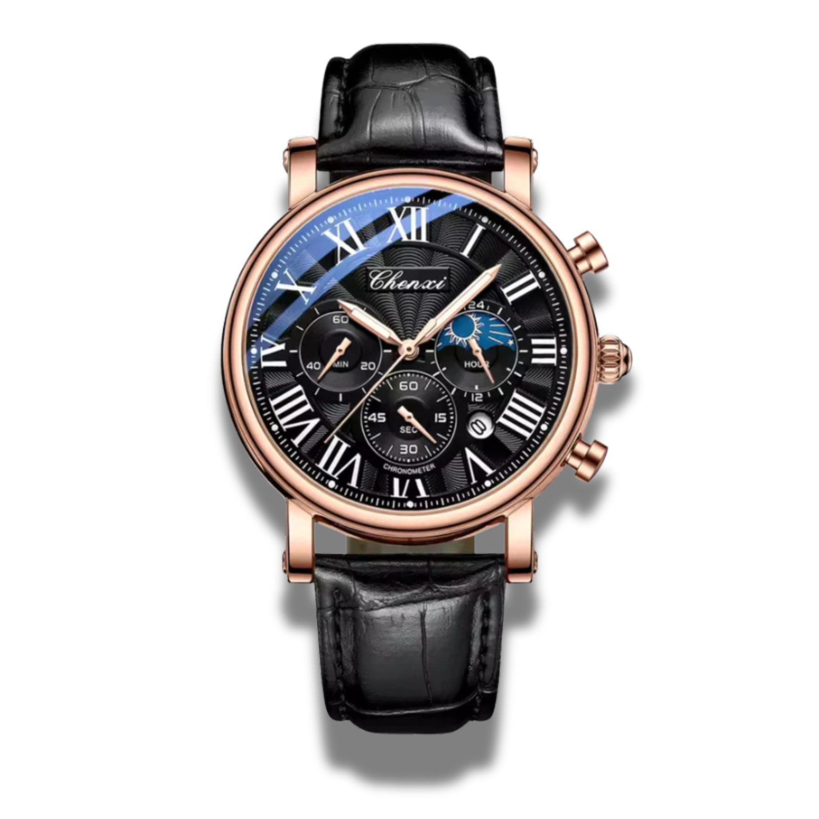 O Chrono Prestige 42mm combina um design elegante com funcionalidades modernas, ideal para quem busca estilo e precisão. Seu mostrador azul profundo com detalhes prateados oferece uma leitura clara e sofisticada, enquanto o cronógrafo integrado permite medições de tempo precisas. A pulseira de aço inoxidável proporciona conforto e durabilidade, tornando-o perfeito para qualquer ocasião.